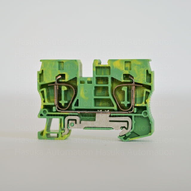 Protective conductor terminal block, number of connections: 2, number of positions: 1, connection method: Spring-cage connection, 1 level, Rated cross section: 10 mm2, cross section: 0.2 mm2 - 16 mm2, mounting type: NS 35/7,5, NS 35/15, color: green-yellow