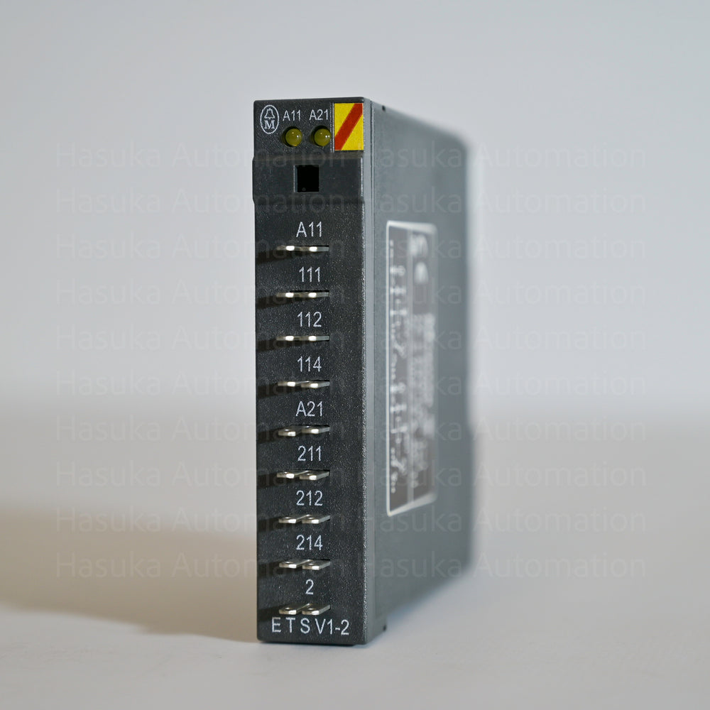 The ETS-V1-2 is a relay amplifier designed for industrial automation systems. It supports 2 A output, operates at 240 VAC and 24 VDC.