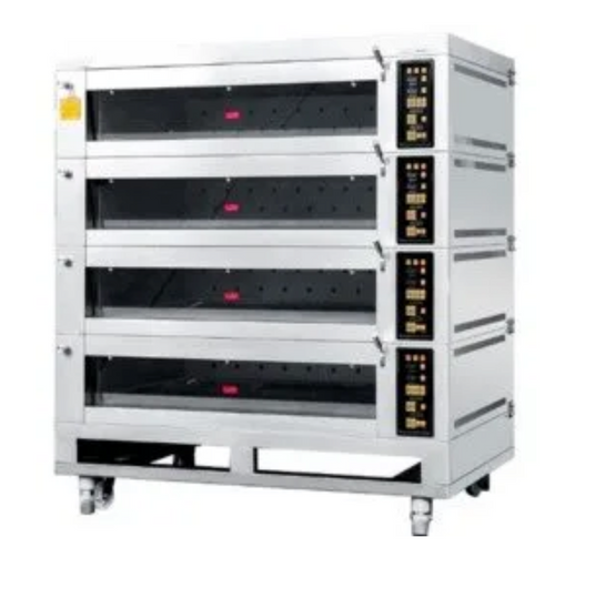 Kilia Deck Oven series includes models with 1 to 4 decks and up to 16 trays, offering flexible baking capacity. Built with stainless steel and optional steam injection or stone plates, these ovens support high-temperature baking up to 300°C. They feature integrated switch cabinets, touch panel controls, and customizable configurations including proofers and exhaust hoods, making them ideal for artisan and commercial baking.