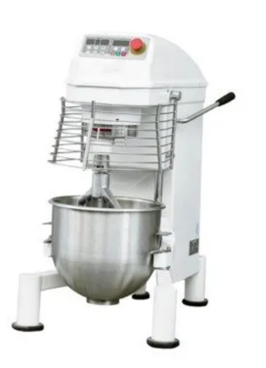 The Kilia Planetary Mixer range includes models from 7 to 40 liters, offering both inverter-controlled variable speed and gear-driven fixed speed options. Designed for hygiene and easy cleaning, these mixers come with standard accessories like bowls, hooks, and beaters, and optional racks or protective nets. Integrated Siemens components and humidity-protected switch cabinets ensure reliability and safety in bakery environments.