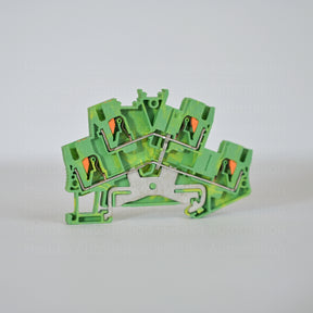 This Phoenix Contact protective conductor double-level terminal block delivers secure connections with its 4 push-in connections and 0.14 mm2 - 4 mm2 cross section. It is ideal for mounting on NS 35/7,5 or NS 35/15 rails and features a green-yellow color for easy identification.