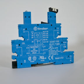 Finder's 93.01.7.024 RELAY BASE SERIES features a 5 pin design and is compatible with 6 to 24V DC systems, easily mounted onto DIN rails for reliable and efficient performance.